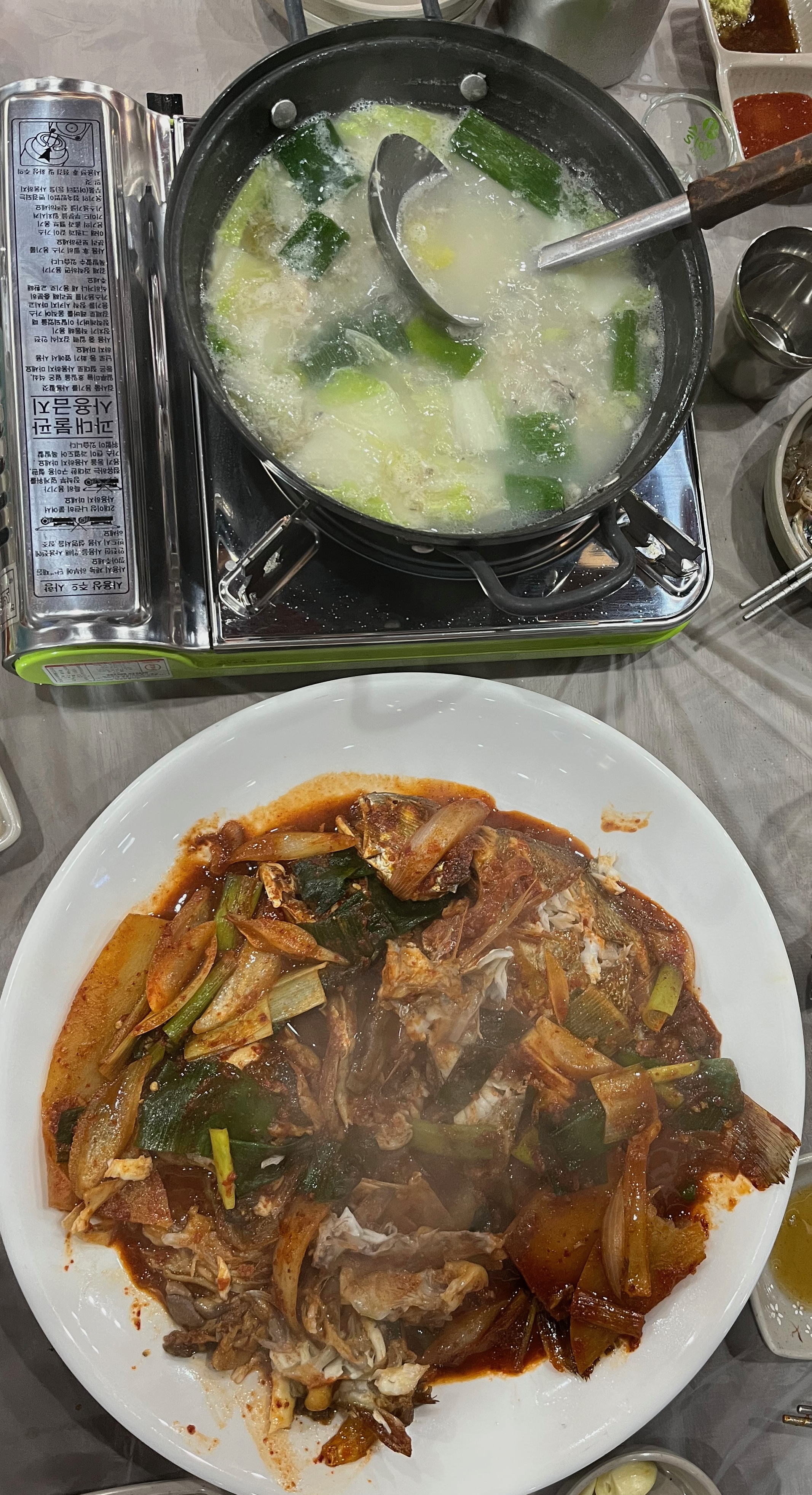 회를 먹고 나면 믿을 수 없는 퀄러티의 생선조림이 나오는데 너무 맛있다. 탕은 지리탕이다. 뼈가 그대로 있는 것이 아니라 육수를 내고 살과 같이 갈아 걸쭉하게 만든 장어탕 느낌.